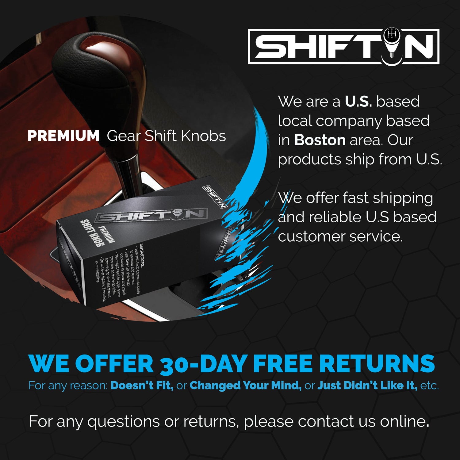 SHIFTIN offers a variety of high-quality replacement aftermarket gear shift knobs for Toyota, Lexus, Scion, Acura, Mazda, Nissan cars. Our products feature premium materials and innovative designs, delivering a unique and exceptional experience. We believe in quality, care, and creating unique products that everyone can enjoy.