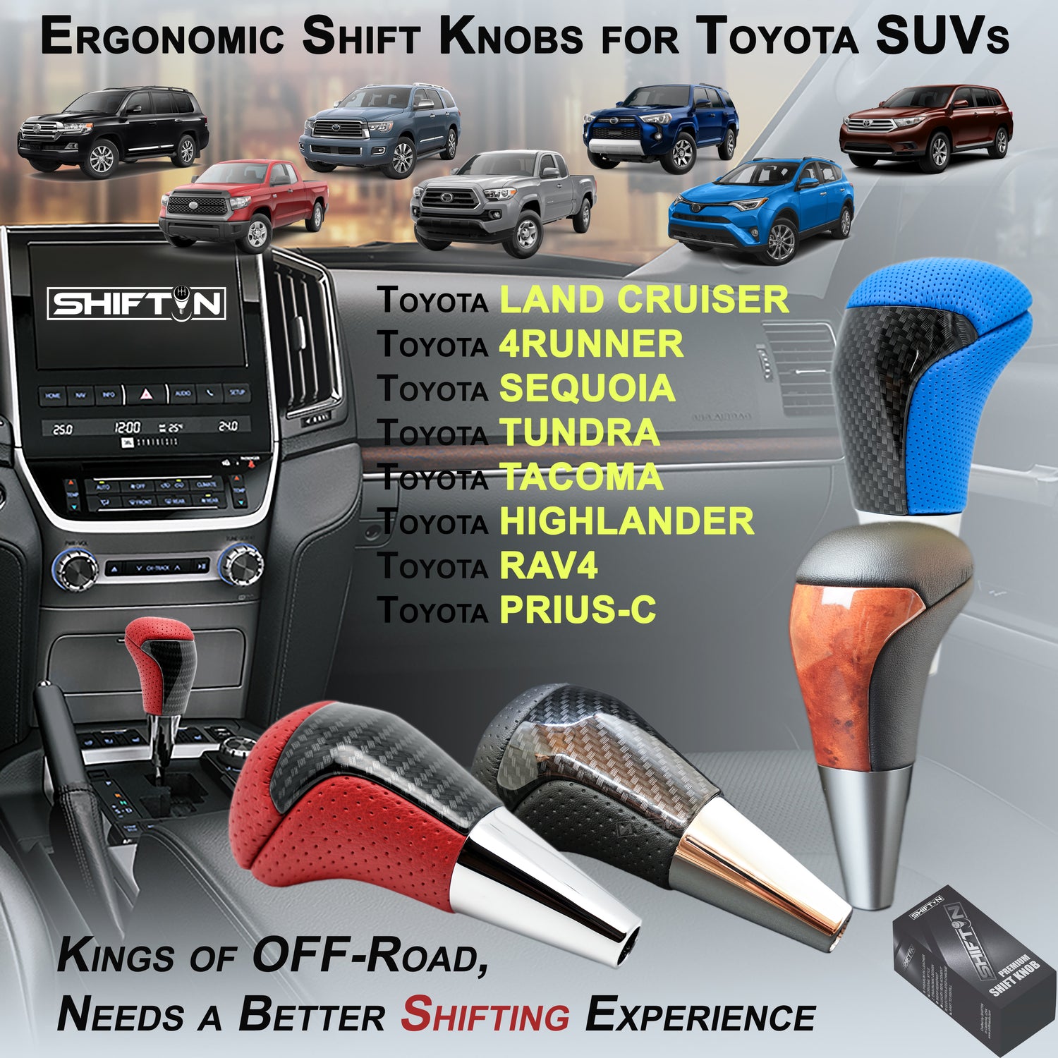 SHIFTIN Gear Shift Knob for Toyota Land Cruiser 4Runner Sequoia Tundra Highlander Off-Road 4x4 TRD