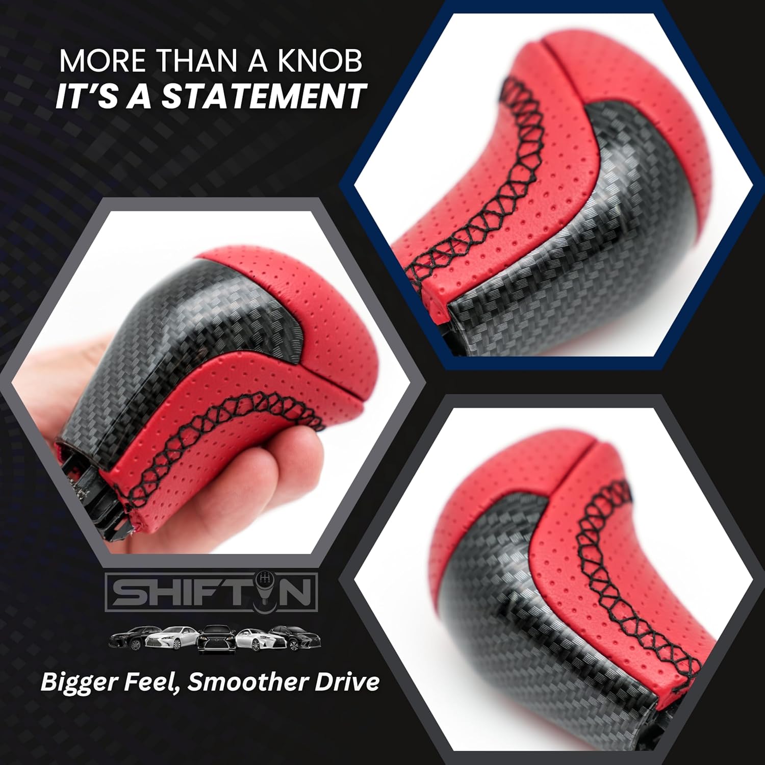 - PREMIUM QUALITY - Ergonomically designed gear shifter with durable wear-resistant leather and smooth dynamic surface pattern. Perfect upgrade option for your OEM Knob Sub-Assembly Shift Lever.